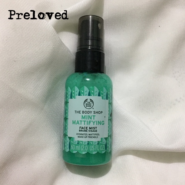 Preloved - The Body Shop Mint Mattifying Face Mist (Sumber : Shopee, Link : https://shopee.co.id/search/?hashtag=%23thebodyshop&keyword=Kosmetik+Wajah&page=0&shippingOptions=6)
