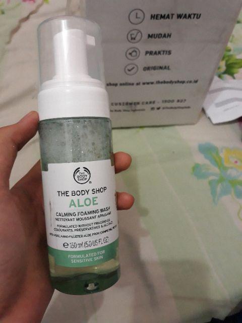 Aloe Calming Foaming Wash 150ml (Sumber : The Body Shop, Link : https://www.thebodyshop.co.id/reno-aloe-foaming-facial-wash-150ml-046.html)