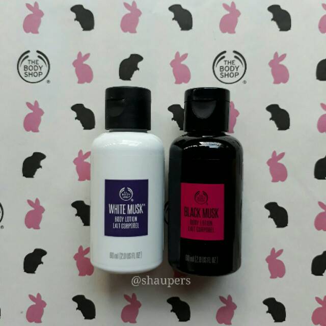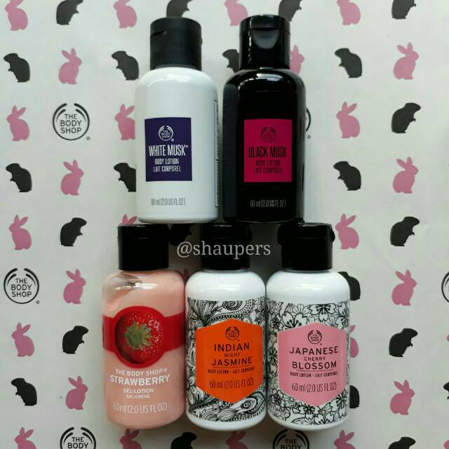 Black Musk/White Musk/Strawberry/Japanese Cherry Blossom/Jasmine Body Lotion 60ml The Body Shop (Sumber : Shopee, Link : https://shopee.co.id/Black-Musk-White-Musk-Strawberry-Japanese-Cherry-Blossom-Jasmine-Body-Lotion-60ml-The-Body-Shop-i.8069401.1791640848)