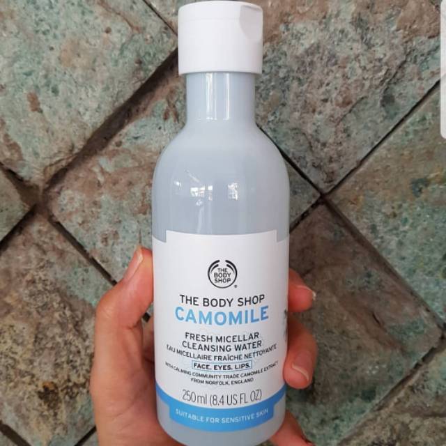 Jual The Body Shop CAMOMILE Micellar Water 250ml - Fresh Cleansing Water - Kota Tangerang Selatan - NicaSan Shop | Tokopedia (Sumber : Tokopedia, Link : https://www.tokopedia.com/nicasanshop/the-body-shop-camomile-micellar-water-250ml-fresh-cleansing-water?trkid=f%3DCa0000L463P0W0S0Sh%2CCo0Po0Fr0Cb0_src%3Dsearch_page%3D22_ob%3D23_q%3Dfresh_po%3D15_catid%3D2622&whid=0)
