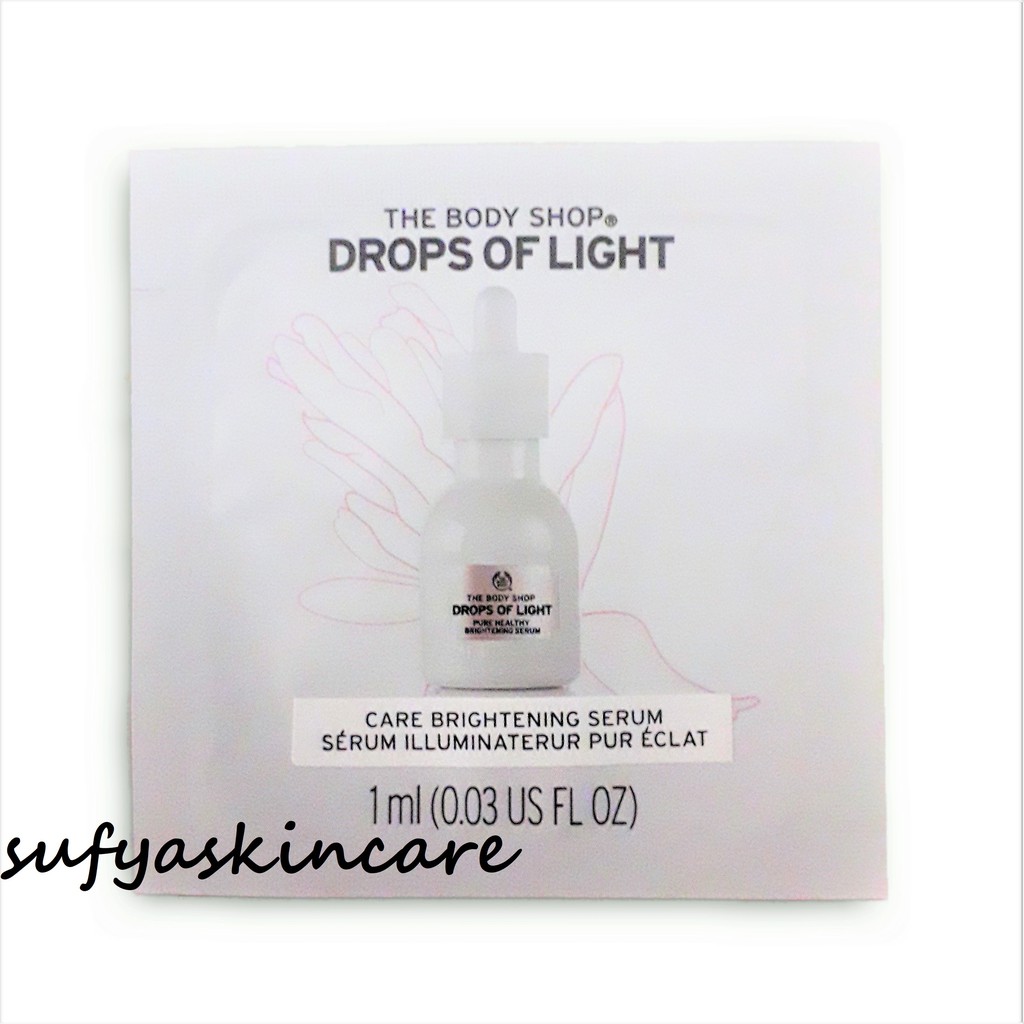 The Body Shop Sample Sachet Drops Of Light Brightening Serum 1 ml (Sumber : Shopee, Link : https://shopee.co.id/The-body-shop-DROPS-OF-LIGHT-BRIGHTENING-LIQUID-PEEL-145ML-i.2834939.8028688)