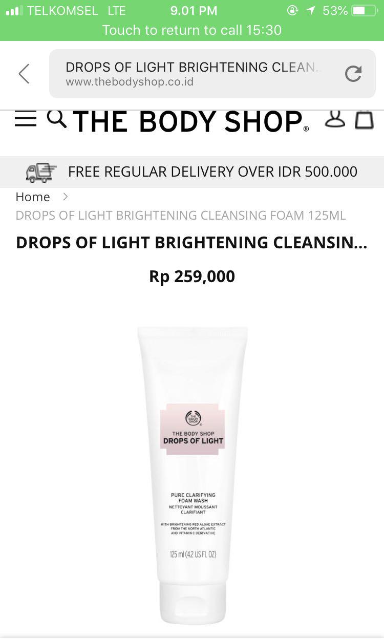 Jual 2019! DROPS OF LIGHT BRIGHTENING CLEANSING FOAM 125ML THE BODY SHOP - Jakarta Utara - Fluto Store | Tokopedia (Sumber : Tokopedia, Link : https://www.tokopedia.com/flutostore/2019-drops-of-light-brightening-cleansing-foam-125ml-the-body-shop)DROPS OF LIGHT BRIGHTENING CLEANSING FOAM 125ML THE BODY SHOP (Sumber : Shopee, Link : https://shopee.co.id/amp/DROPS-OF-LIGHT-BRIGHTENING-CLEANSING-FOAM-125ML-THE-BODY-SHOP-i.111212013.1844762306)