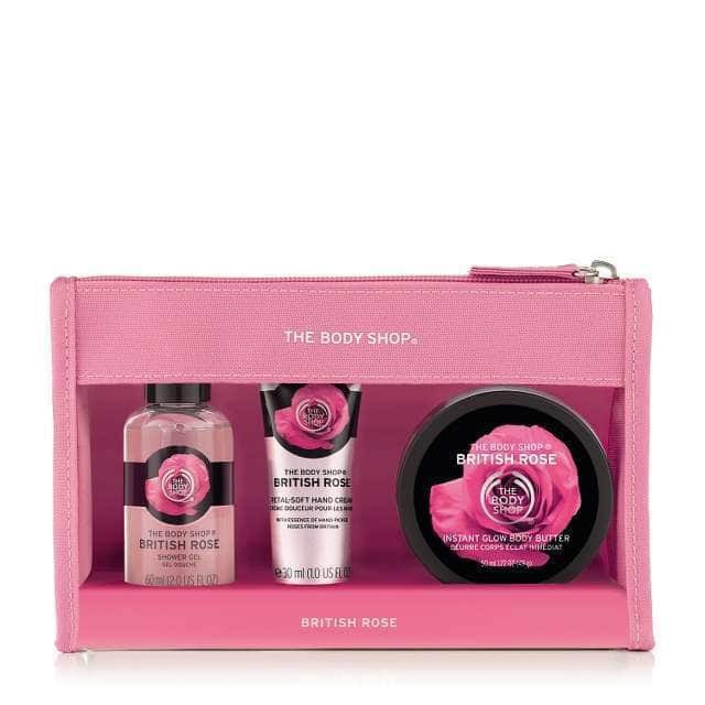 ASLI The Body Shop Gift Travel Set British Rose (Sumber : Shopee, Link : https://shopee.co.id/The-Body-Shop-British-Rose-Pouch-Travel-i.10220084.1938335461)