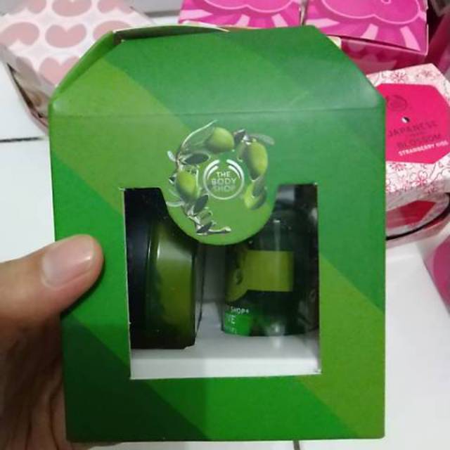 Gift Small Fuji Green Tea (Sumber : Zalora, Link : https://www.zalora.co.id/the-body-shop-gift-small-fuji-green-tea-n-a-2061344.html)The body shop Gift Mini Duo Butter Olive (Sumber : Shopee, Link : https://shopee.co.id/The-body-shop-Gift-Mini-Duo-Butter-Olive-i.4263673.1758202517)
