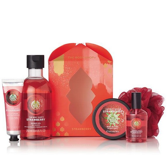 TBS The Body Shop STRAWBERRY / BRITISH ROSE / SHEA / ALMOND MILK Gift Set Medium Kubah ORIGINAL (Sumber : Shopee, Link : https://shopee.co.id/The-body-shop-STRAWBERRY-gift-set-i.2834939.8393267)
