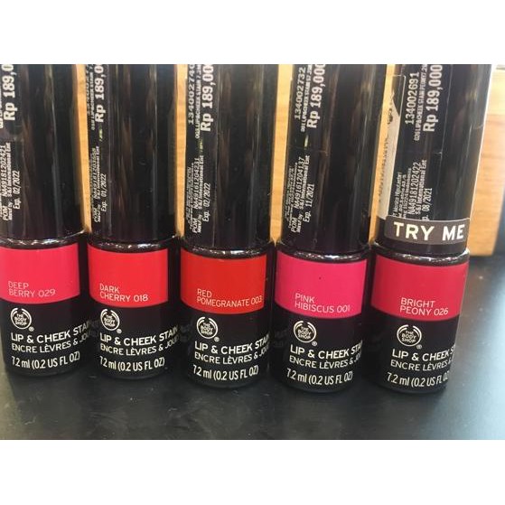 ♚zdw-259 Lip Tint Lip & Cheek Stain The Body Shop: Bright Peony/Dark Cherry/Red Pomegranate/Pink Hib (Sumber : Shopee, Link : https://shopee.co.id/%E2%99%9Azdw-259-Lip-Tint-Lip-Cheek-Stain-The-Body-Shop-Bright-Peony-Dark-Cherry-Red-Pomegranate-Pink-Hib-i.162666229.2812771361)
