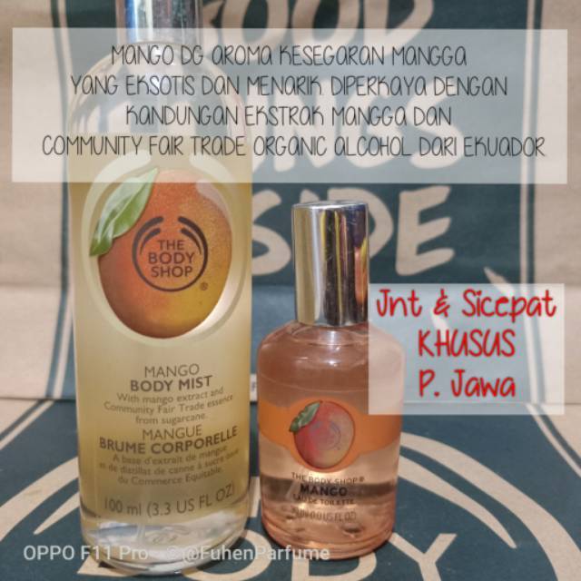 Paket MANGO Body Mist 100ml + Parfum EDT 30ml The Bodyshop Reject (Sumber : Shopee, Link : https://shopee.co.id/Paket-MANGO-Body-Mist-100ml-Parfum-EDT-30ml-The-Bodyshop-Reject-i.11124686.139455110)