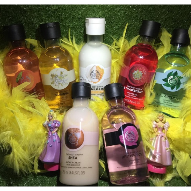 Shower gel the body shop 250ml / mango / moringa / almond milk and honey / shea / british rose (Sumber : Shopee, Link : https://shopee.co.id/Shower-gel-the-body-shop-250ml-mango-moringa-almond-milk-and-honey-shea-british-rose-i.7868414.1781427924)
