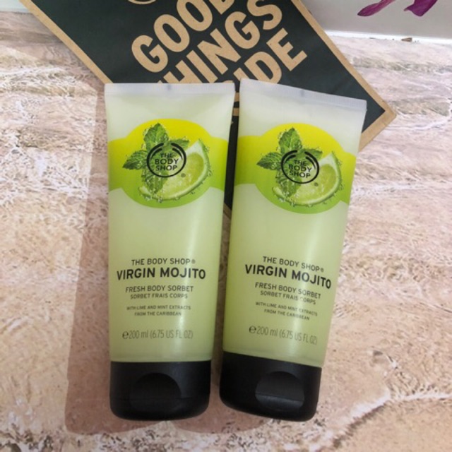 [Original] The Body Shop VIRGIN MOJITO FRESH BODY SORBET BODY LOTION 200ML (Sumber : Shopee, Link : https://shopee.co.id/-Original-The-Body-Shop-VIRGIN-MOJITO-FRESH-BODY-SORBET-BODY-LOTION-200ML-i.9952924.983490885)