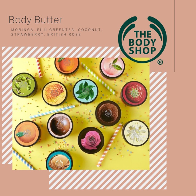The Body Shop Body Lotion 250ml Full Strawberry shea moringa mango green tea coconut peach almond (Sumber : Shopee, Link : https://shopee.co.id/The-Body-Shop-Body-Lotion-250ml-Full-Strawberry-shea-moringa-mango-green-tea-coconut-peach-almond-i.1712246.1498165561)