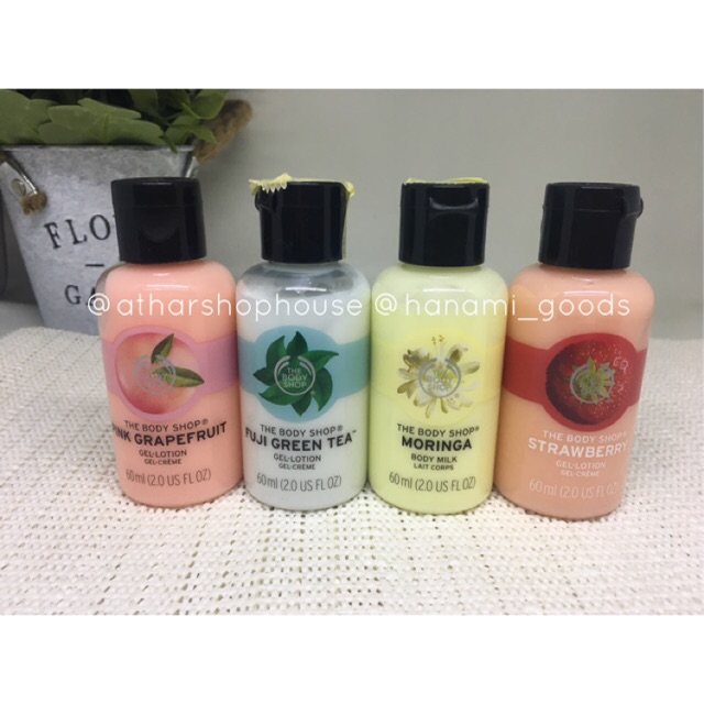 The Body Shop Body Lotion 60 ml : Strawberry / Moringa/ Wild Argan Oil / Mango (Sumber : Shopee, Link : https://shopee.co.id/hiper_mart/1839747286?__classic__=1)