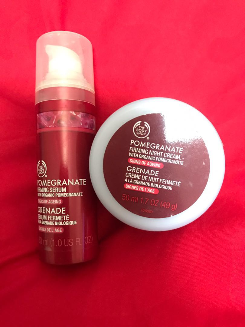 the body shop pomegranate serum dan night cream (Sumber : Carousell, Link : https://id.carousell.com/p/my-225234808/)
