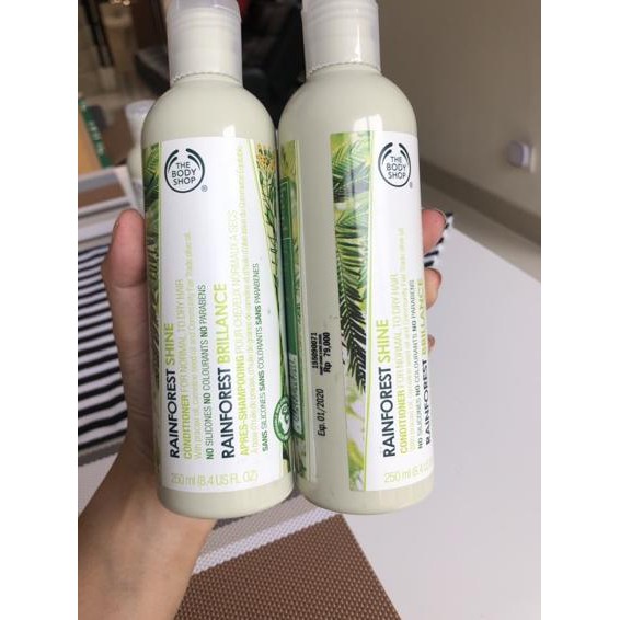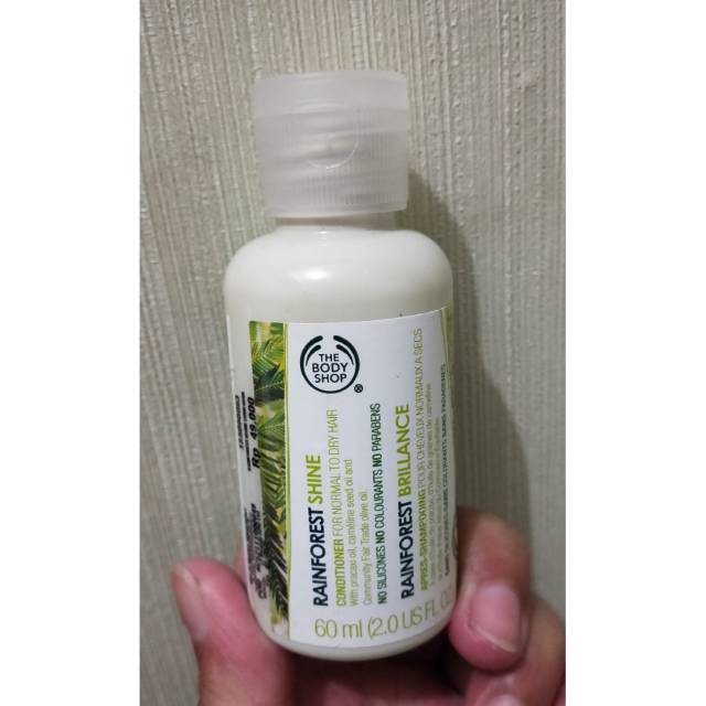 The Body Shop Rainforest Shine Conditioner for Normal to Dry Hair [60 mL] (Sumber : Blibli.com, Link : https://www.blibli.com/harga/hair-di-rambut--the-body-shop?page=1&start=0&searchTerm=hair%20di%20rambut&intent=true&merchantSearch=true&sort=1&brand=the%20body%20shop&customUrl=hair-di-rambut--the-body-shop)[ NEW ] Rainforest shine conditioner the body shop (Sumber : Shopee, Link : https://shopee.co.id/amp/-NEW-Rainforest-shine-conditioner-the-body-shop-i.29820203.1782543027)