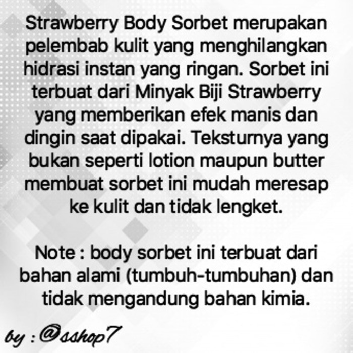 HOT OFFERRR ASLI Body Sorbet The Body Shop Strawberry 200ml (Sumber : Bukalapak, Link : https://www.bukalapak.com/p/perawatan-kecantikan/produk-kecantikan-lainnya/z9c39v-jual-hot-offerrr-asli-body-sorbet-the-body-shop-strawberry-200ml)