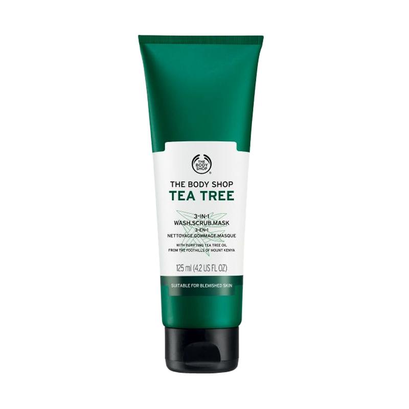 The Body Shop Tea Tree 3 In 1 Wash Scrub Mask [125 mL] (Sumber : Blibli.com, Link : https://www.blibli.com/p/the-body-shop-tea-tree-3-in-1-wash-scrub-mask-125-ml/pc--MTA-2297256?ds=ALA-21905-00261-00001)