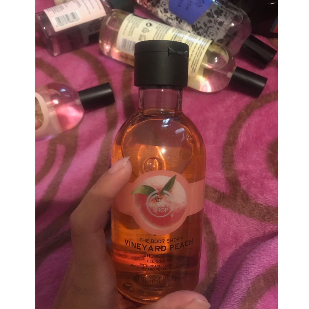 VINEYARD PEACH SHOWER GEL THE BODY SHOP (Sumber : Shopee, Link : https://shopee.co.id/eyeshadow-down-to-earth-the-body-shop-i.39525887.2097084755)