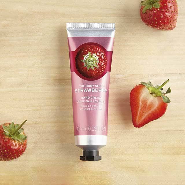 The Body Shop Strawberry Hand Cream [30 mL] (Sumber : Blibli.com, Link : https://www.blibli.com/p/the-body-shop-strawberry-hand-cream-30-ml/pc--MTA-3138017?ds=DNF-60021-00483-00001&source=SEARCH_OR_CATEGORY_PAGE&cnc=false&pickupPointCode=PP-3032783)Strawberry Hand Cream (Sumber : Female Daily Review, Link : https://reviews.femaledaily.com/hand-foot/hand-cream/the-body-shop/strawberry-hand-cream)