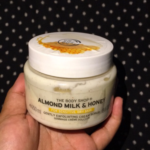 The Body Shop Original Almond Milk & Honey Body Scrub 250ml (Sumber : Shopee, Link : https://shopee.co.id/THE-BODY-SHOP-SHOWER-GEL-250-ML-ORIGINAL-i.101929867.1643197595)