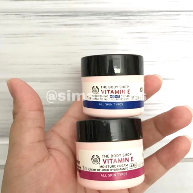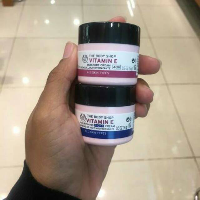 Vit E 15 ml (Day cream + Night cream) (Sumber : Shopee, Link : https://shopee.co.id/THE-BODY-SHOP-Vitamin-E-Day-Night-Cream-i.9576177.423814599)